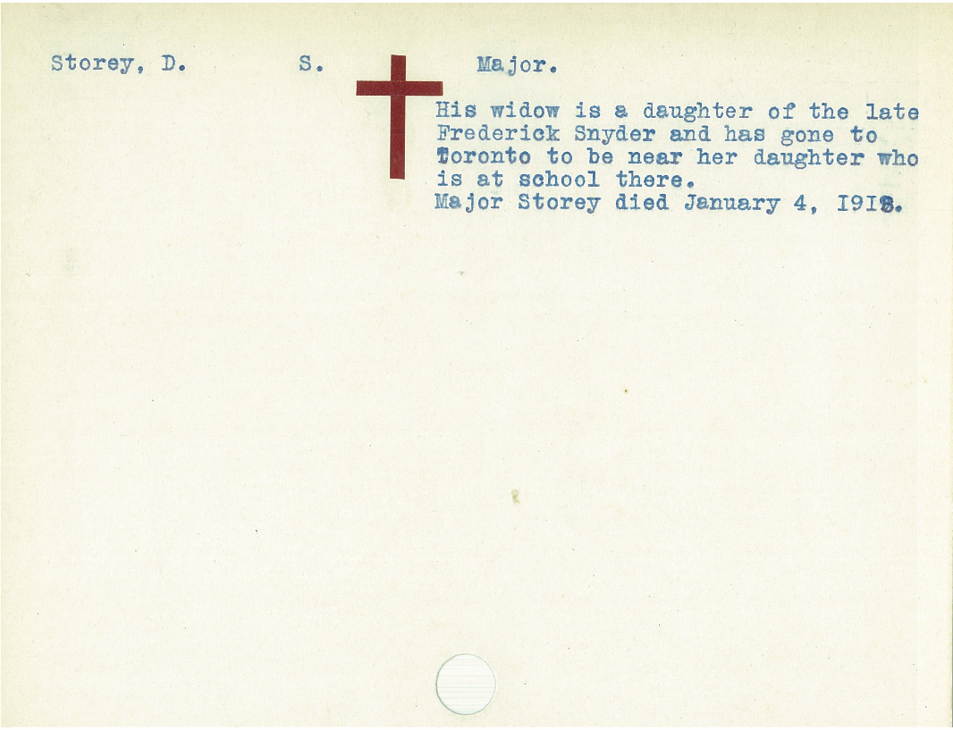 Fils de John et Elizabeth Storey, de Milton West, Ontario. Époux d'Ottillia Henrietta Storey de Kitchener, Ontario.