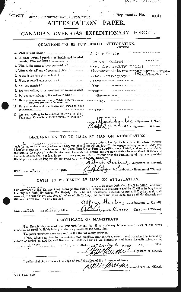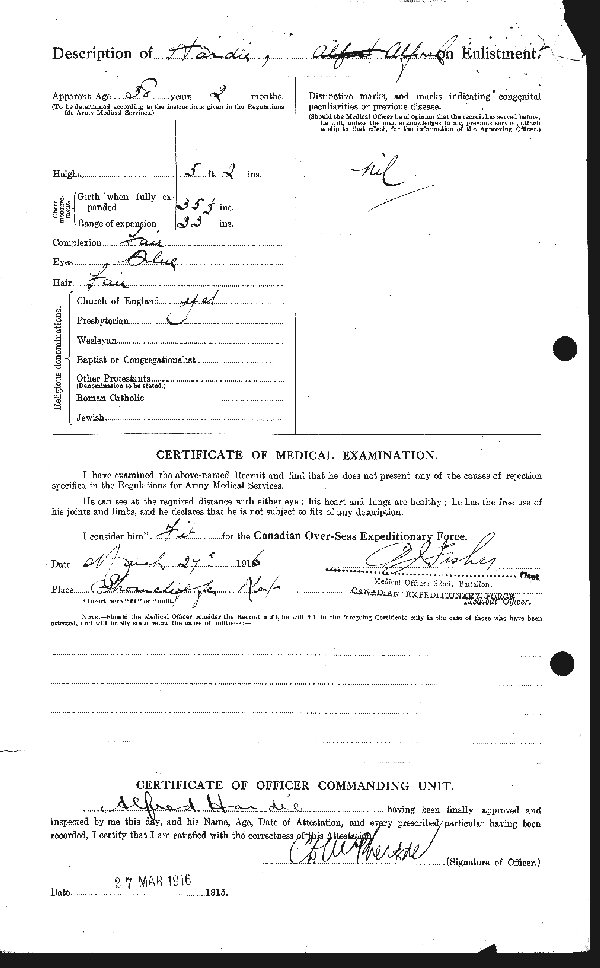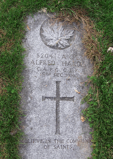 Fils de Mary Jane Hardie, de "Bryngolen," Margate, Angleterre. Époux de Elizabeth Augusta Hardie, de South Tottenham, London, Angleterre.