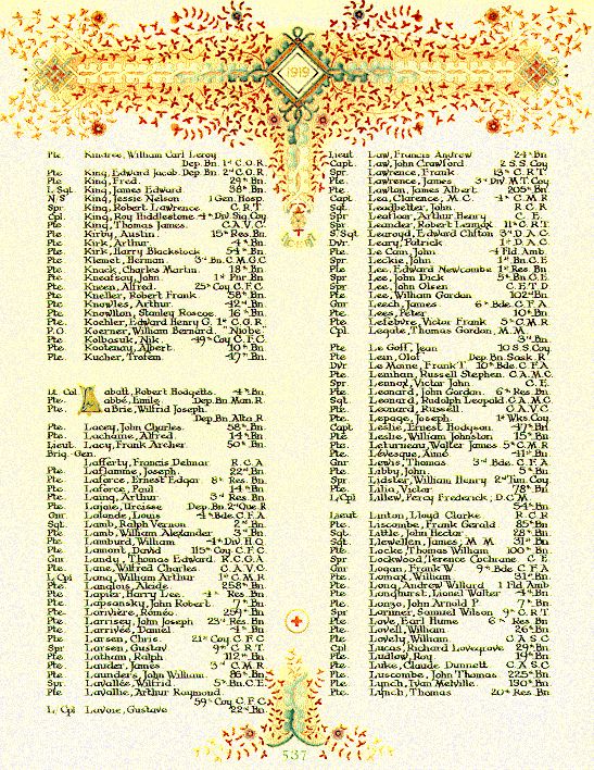 Page 537 du Livre du Souvenir de la Première Guerre mondiale.