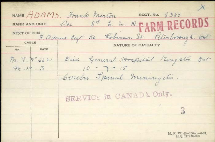 Fils de Frank et Jennie Adams, de 50, rue Robinson, Peterborough, Ont.