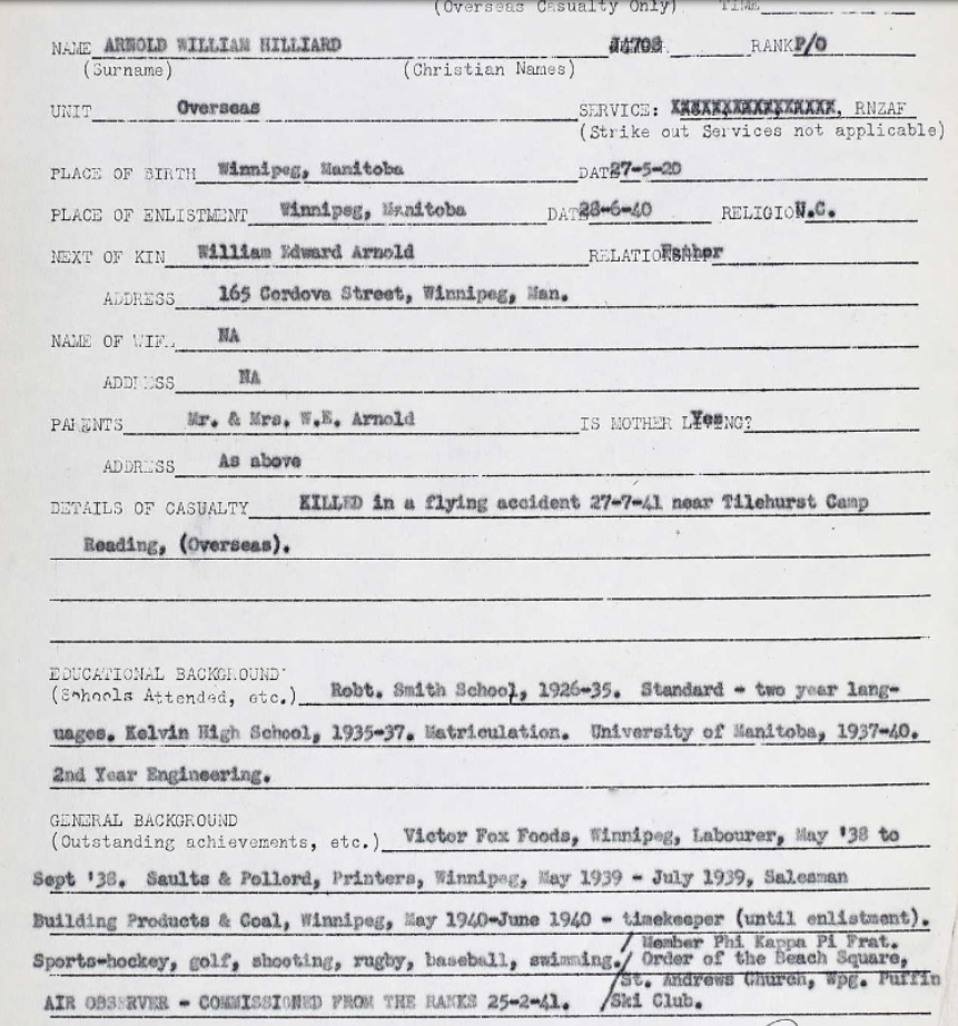 Fils de William Edward et Alice Maude Arnold, de Winnipeg, Manitoba, Canada.