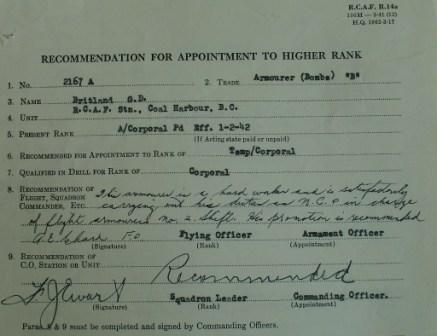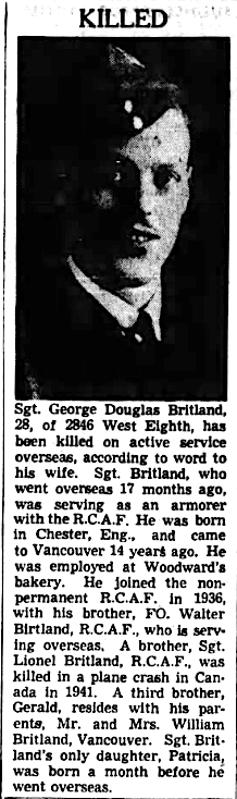 Frère du sergent Lionel Poston Britland, décédé le 21 septembre 1941 pendant qu’il servait dans le Royal Canadian Air Force.