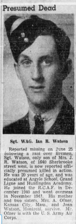 Galerie numérique de Flight Sergeant Ian Reay Watson