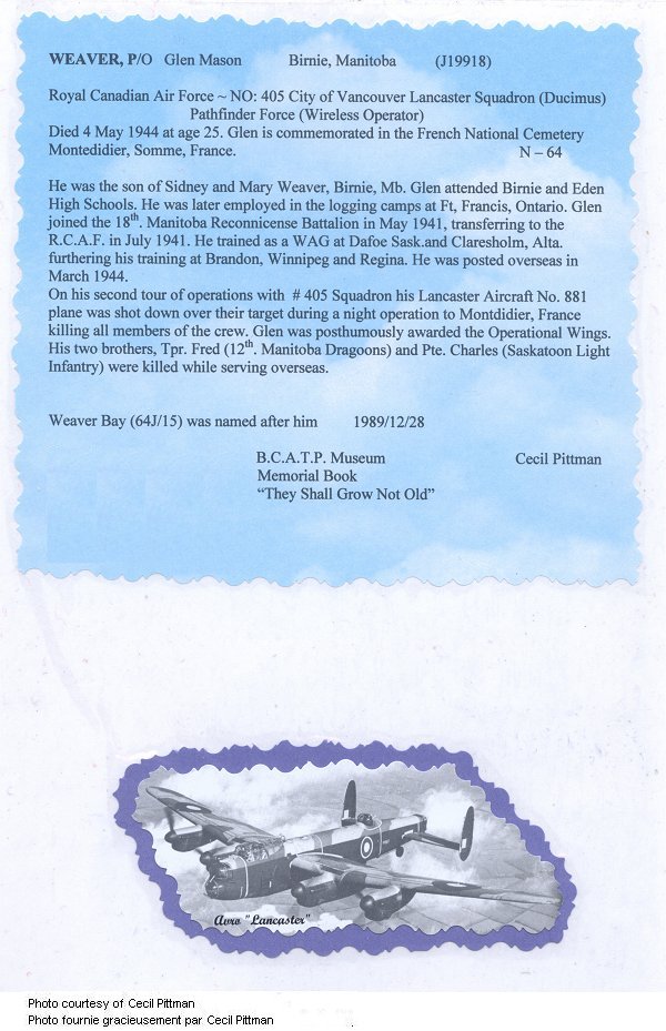 Galerie numérique de Lieutenant d'aviation Glen Mason Weaver