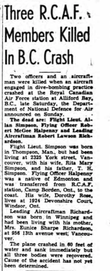 Fils de Thomas H. Simpson et Isabella M. Simpson de Vancouver. Époux de Rita M. Simpson de Vancouver.
