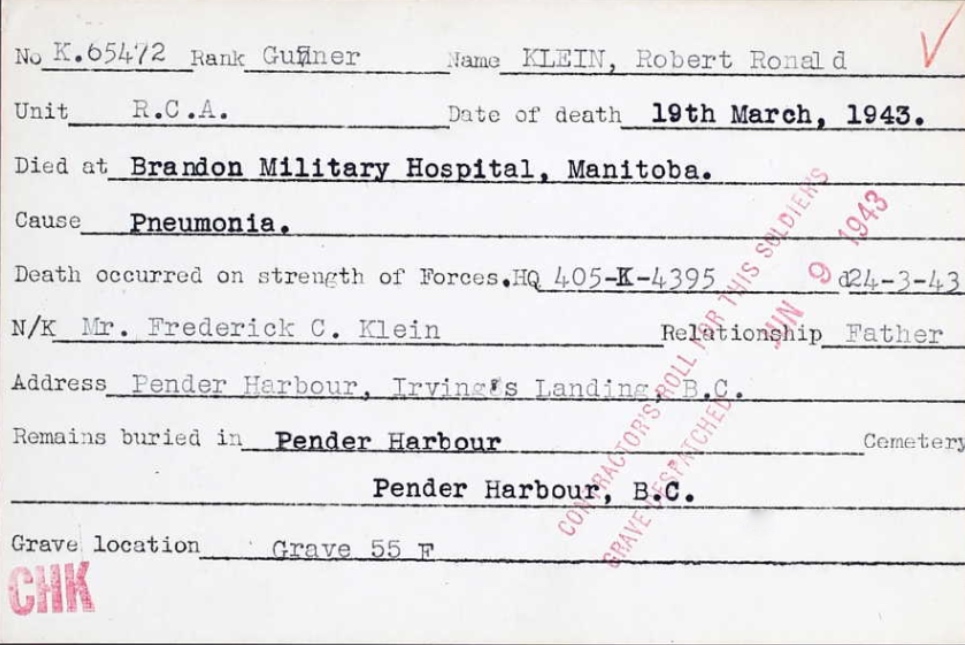 Fils de Frederick C. Klein et Aneta Klein, de Irving's Landing.