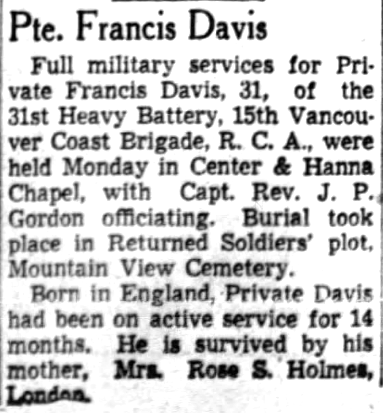 VANCOUVER (MOUNTAIN VIEW) CEMETERY British Columbia, Canada