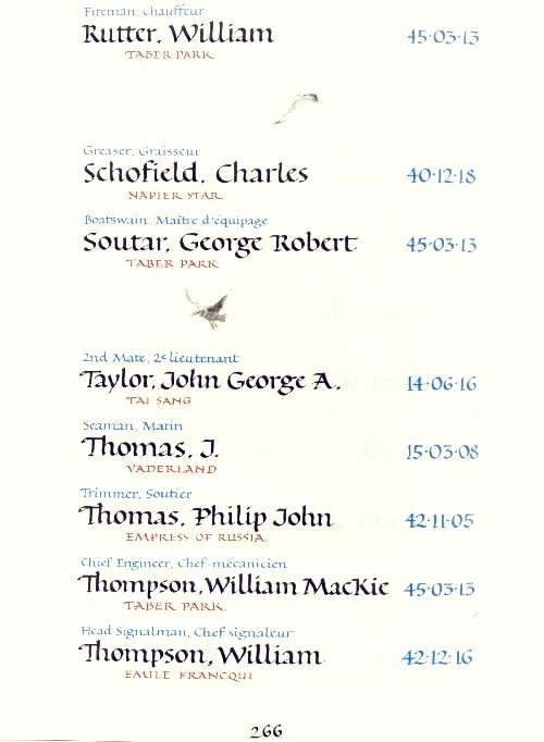 Page 266 du Livre du Souvenir de la Marine marchande.