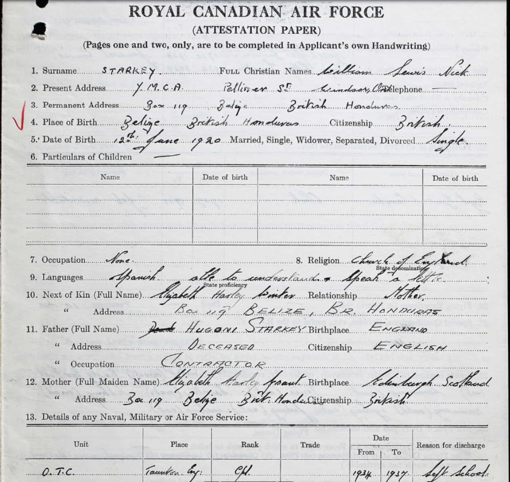 Fils de Hugh L. Starkey et Elizabeth H. Starkey, de Belize, British Honduras.