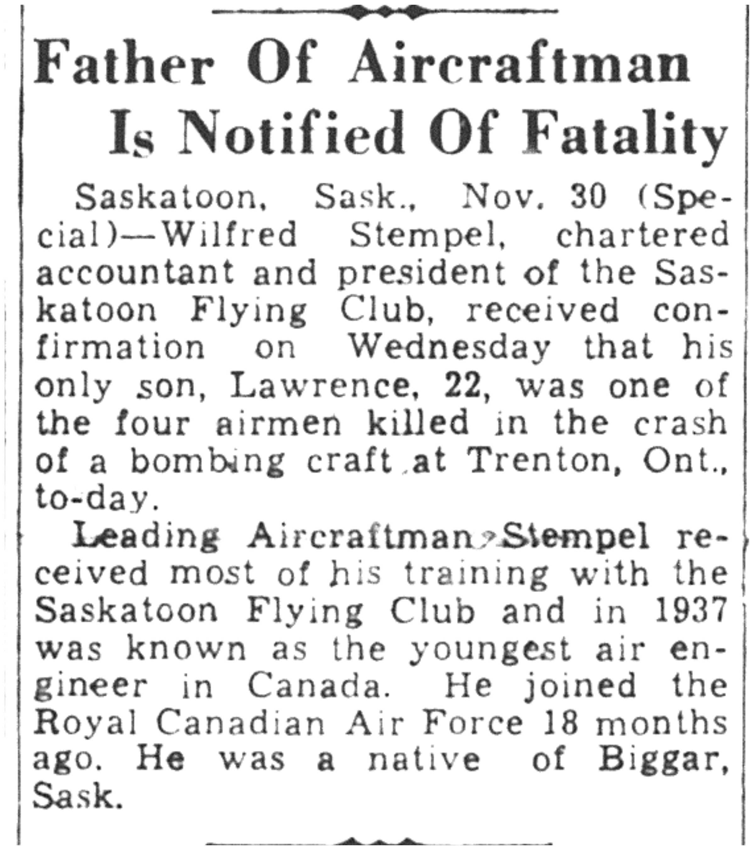 Fils de Wilfrid et Winnifred Stempel, de Saskatoon.