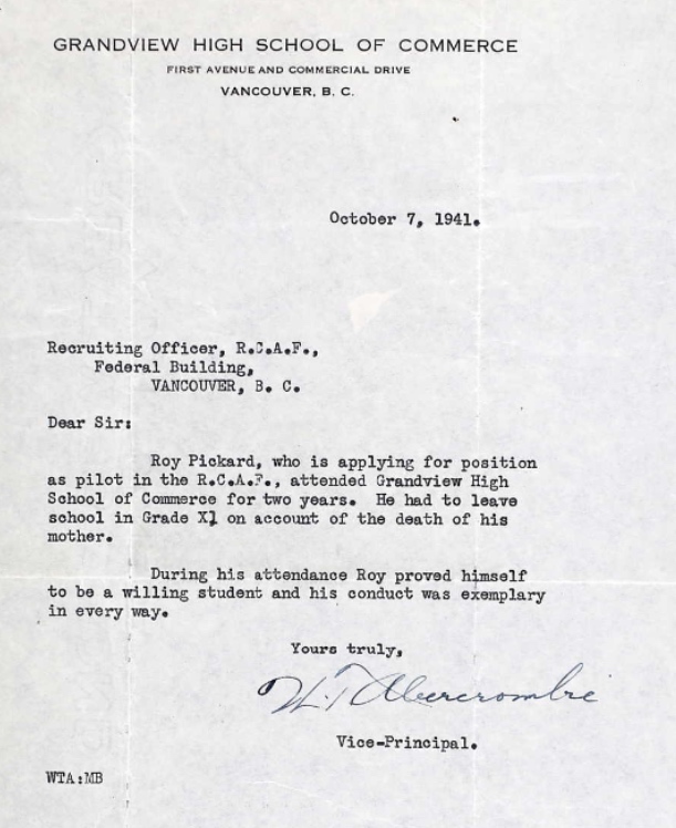 Fils de Roy William et Edith Mary Pickard, de Vancouver, Colombie-Britannique.