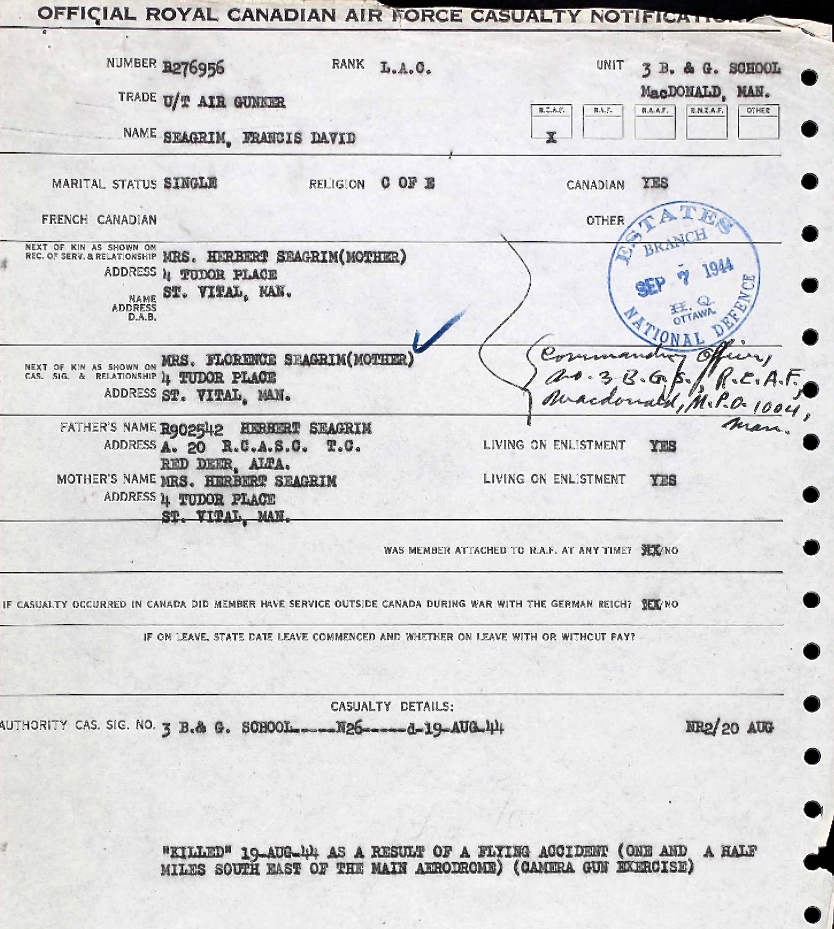 Fils de Maj. Herbert C. Seagrim et Florence Seagrim, de St. Vital.
