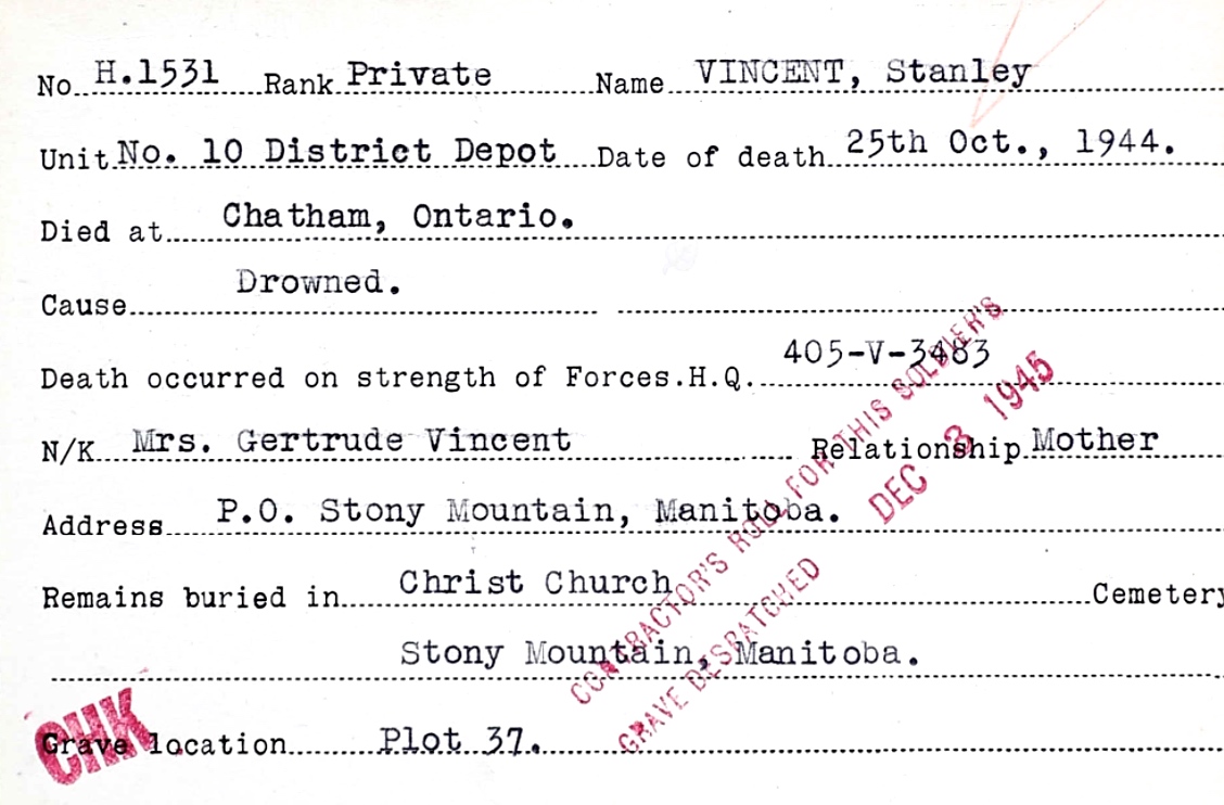 Fils de Cyril S. Vincent et Gertrude Vincent, de Stony Mountain.