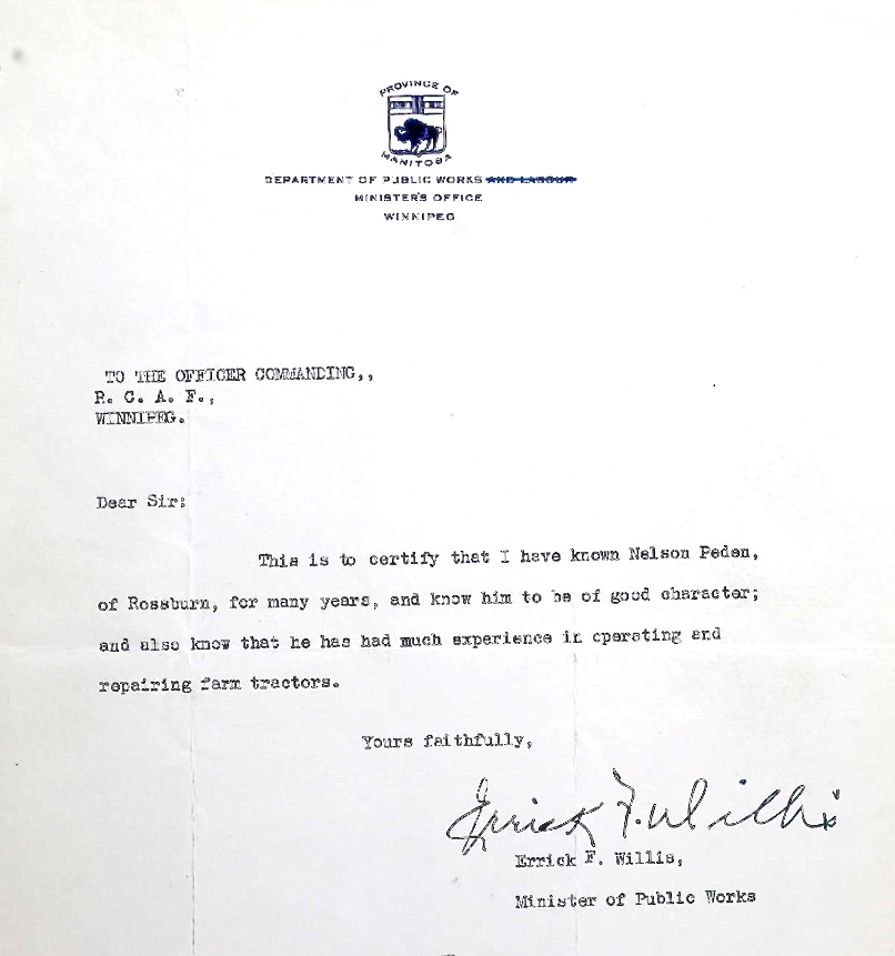 Fils de Robert et Marion W. Peden, de Rossburn, Manitoba. Époux de Viola Peden, de Gimli, Manitoba.