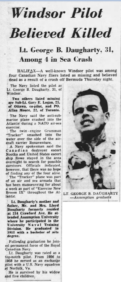 Fils de Lloyd et Maybel de London, (Ontario). Époux de Barbara Jean (née Hines) Daugharty et père de Daniel, Eric, Neil, Karen et Curtis d'Essex, (Ontario). Frère de Lewis et Eileen.