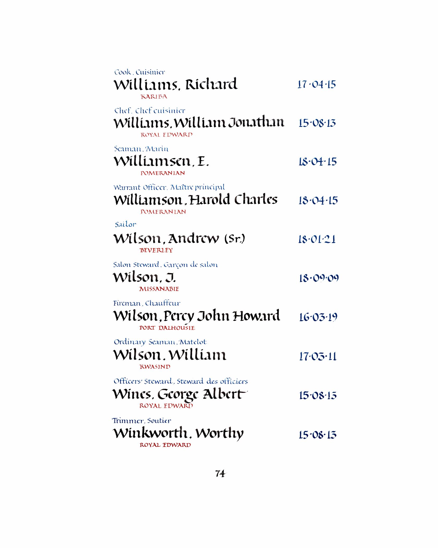 Page 74 du Livre du Souvenir de la Marine marchande.