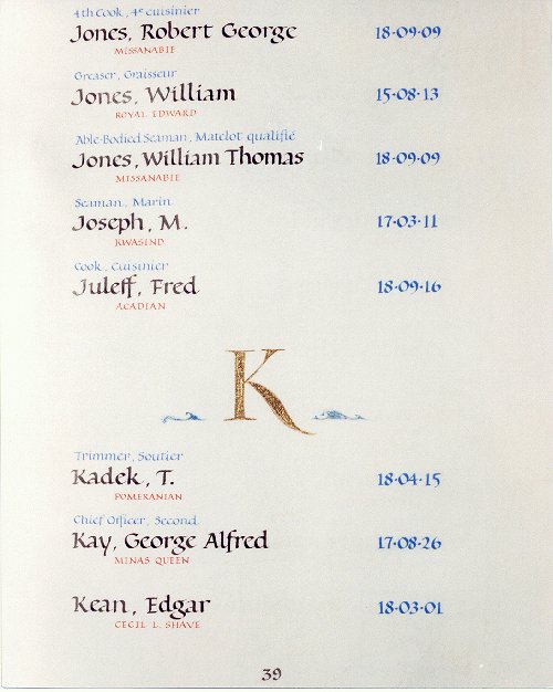 Page 39 du Livre du Souvenir de la Marine marchande.