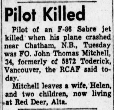 Décès : 14 septembre 1954 Point Escuminac, Nouveau-Brunswick