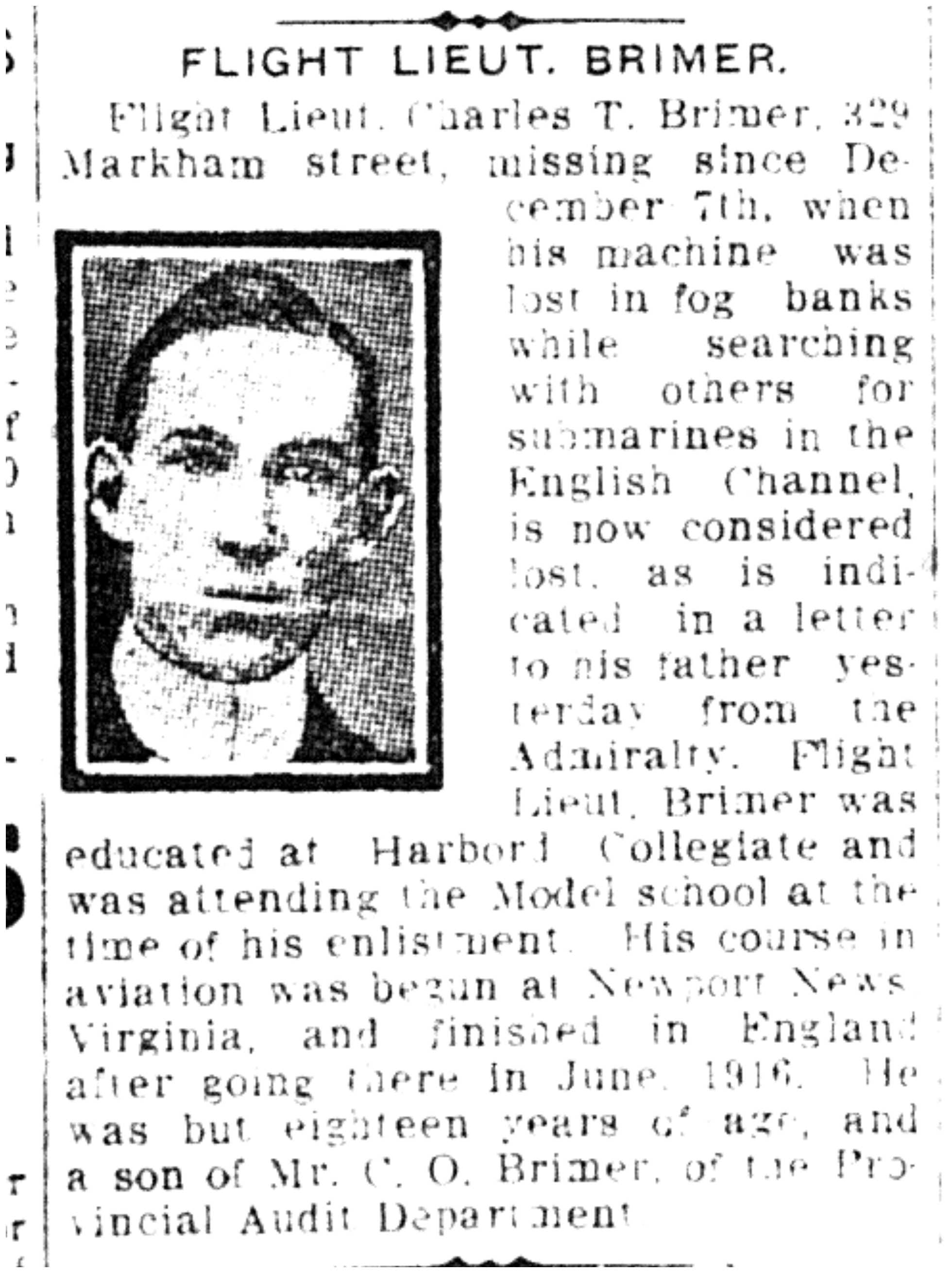 Fils de Charles O et Mary B. Brimer de Toronto, Ontario.