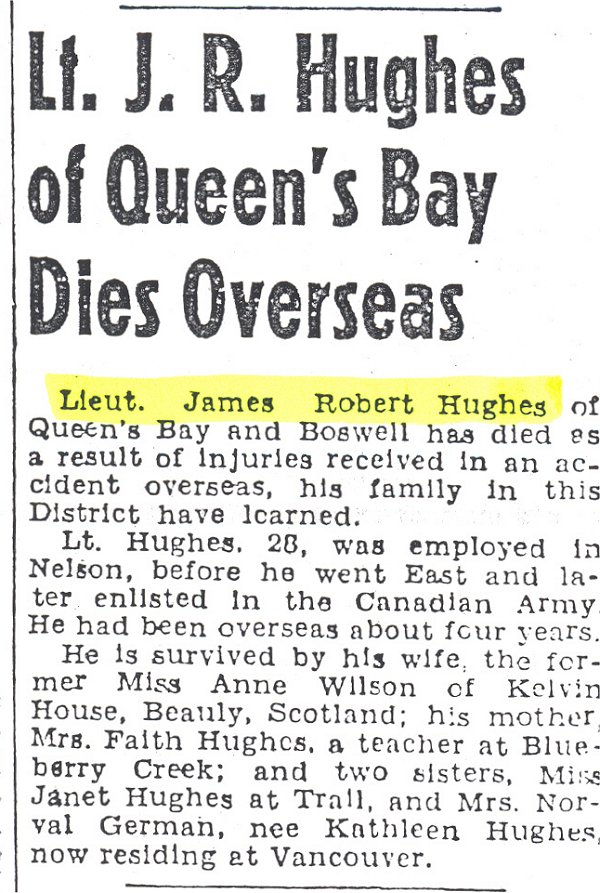 Fails de Faith Hughes de Blueberry Creek, Colombie-Britannique. Époux d'Anne (Wilson) Hughes de Beauly, en Écosse.