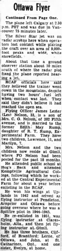 Fils de John A. et Caroline G. Nelson d'Ottawa, Ontario. Époux d'Edith May (née Rump) Nelson et père de Lawrence, Marilyn et Leslie de Gimli, Manitoba. Frère de Lawrence Earl, Clifford W., John Ronald et Grace E. Nelson.