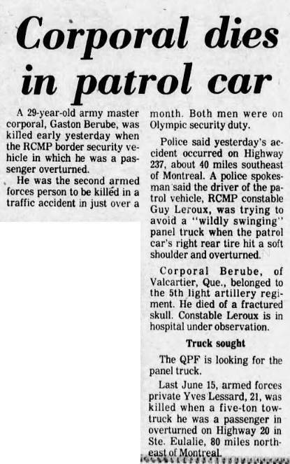 Fils de Joseph Auguste Berubé de Rivière du Loup, Québec. Époux de Margaret Priscilla (née Morris) Berubé et père de Conrad et Chantal Berubé de Val St. Michel, Québec.