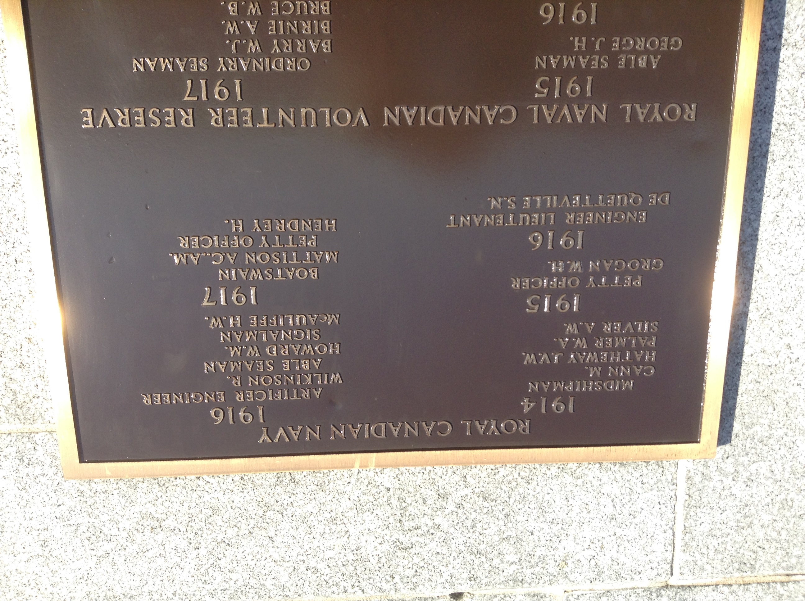 Ce Monument commémoratif, érigé au parc de Point Pleasant dans la capitale de la Nouvelle-Écosse, est l'un des rares hommages concrets aux hommes disparus en mer. Pendant la Seconde Guerre mondiale, la Marine royale du Canada perdit vingt-quatre navires et près de deux mille membres de ses effectifs.