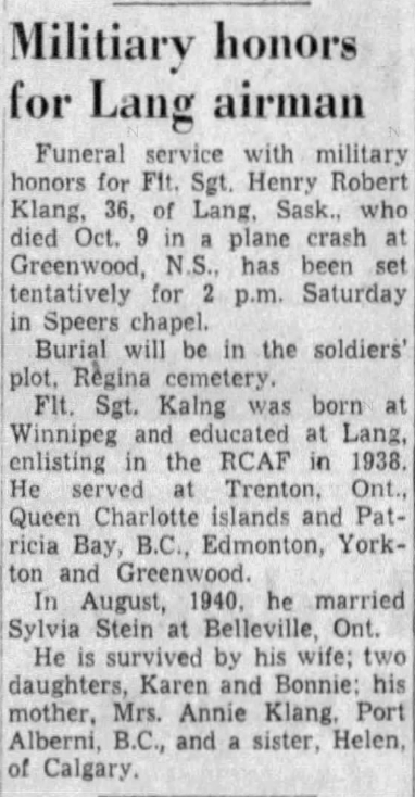 Fils de Peter et Anna Klang. Époux de Sylvia Josephine Klang. Père de Karen Ann et Bonita Mae Klang. Frère de Helen Belisle.