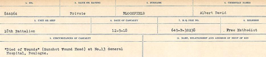 Galerie numérique de Soldat Albert David Bloomfield