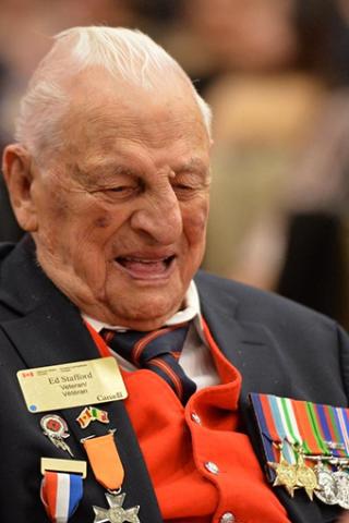 Depuis qu’il a pris sa retraite du service militaire en décembre 1945, Ed Stafford continue de participer à des événements commémoratifs. Il se joint encore aux Governor Generals’ Horse Guards et participe au défilé du Jour des guerriers de l’Exposition nationale canadienne depuis plus de 65 ans.