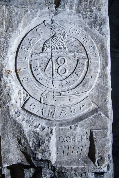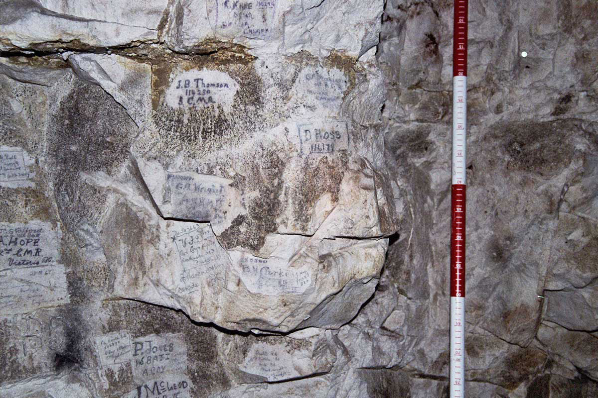 Remettez aux élèves le document « Sortons les craies pour le Souvenir », afin d’aider les élèves à comprendre comment les Canadiens ont participé à la bataille de la crête de Vimy. Le document explique également comment, au cours des heures qui ont précédé l’attaque, les soldats canadiens étaient entassés dans les tranchées et les tunnels qui ont été creusés sous la crête de Vimy. Les murs des tunnels étaient faciles à graver au moyen d’un objet pointu, comme un couteau de poche, car les tunnels avaient été creusés sur une ancienne crayère. Les soldats passaient le temps en écrivant des lettres à leurs familles et en faisant des gravures sur les murs des tunnels.