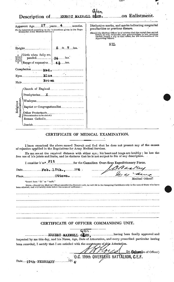 Galerie numérique de Soldat Ernest Maxwell Glen