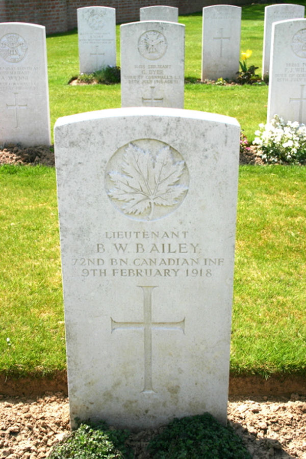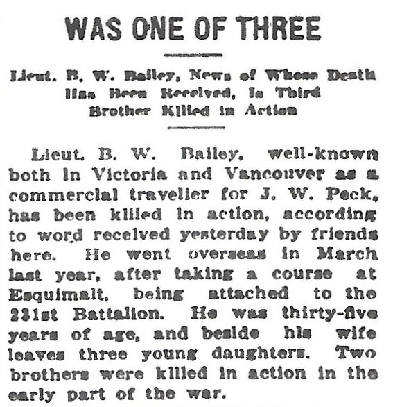 Frère de sergent Christopher Thomas Bailey, qui est mort alors qu’il servait avec l’infanterie canadienne (Saskatchewan Regiment) et frère du soldat Benjamin Bernard Bailey, qui est mort alors qu’il avec l’infanterie canadienne (Saskatchewan Regiment).