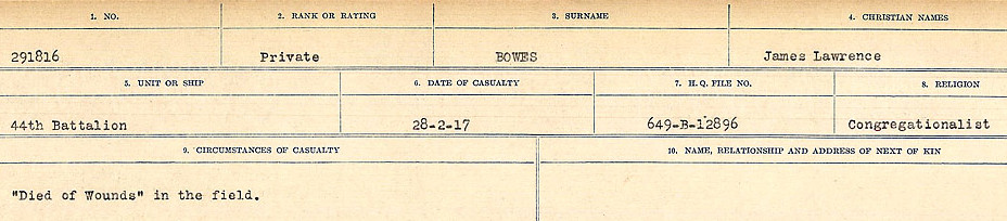 Galerie numérique de Soldat James Lawrence Bowes