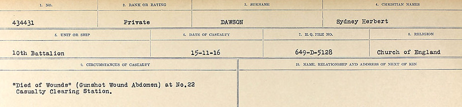 Fils de John W. et Elizabeth Dawson, de 99, Oxford Rd., Moseley, Birmingham, Angleterre.