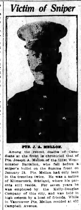 Fils de Joseph Mellon et Janet Abbott Mellon, de 16, Richardlet Road, Kilmarnock, Écosse.