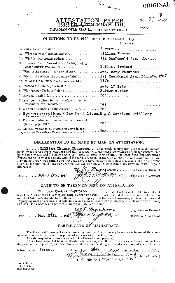 Soldat William Thomas Thompson