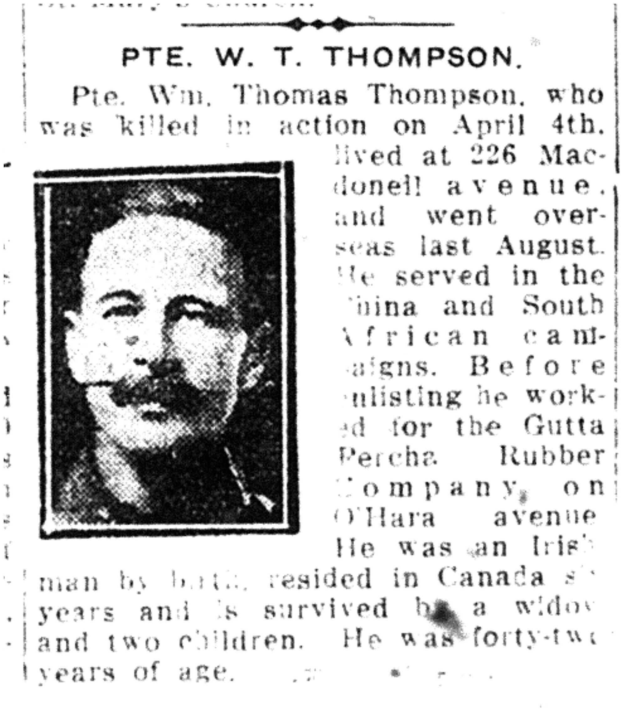 Fils de Mme F. Collett (née Thompson); époux de Minnie M. Thompson, de Fergus, Ontario.