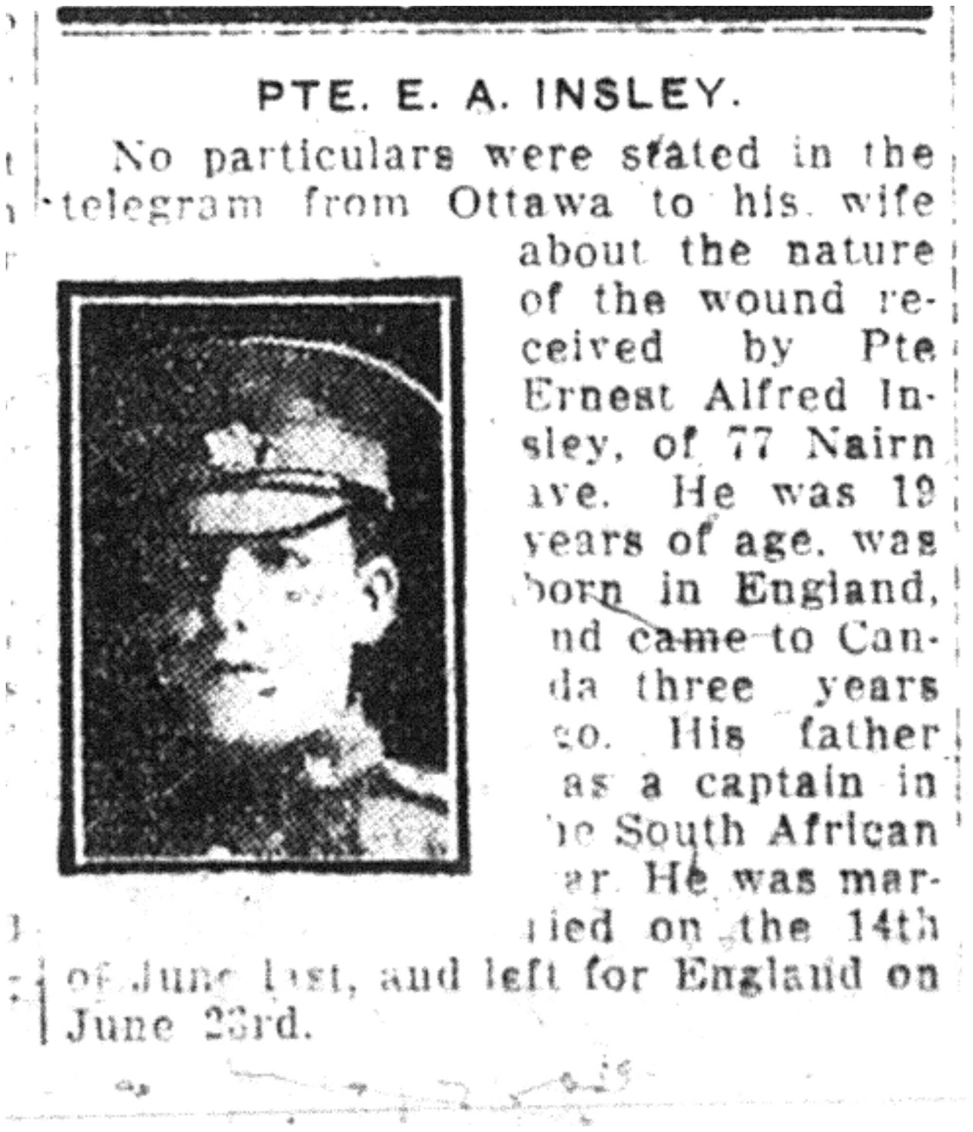Galerie numérique de Soldat Ernest Alfred Insley