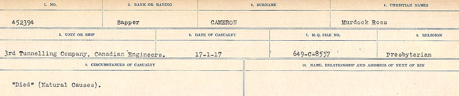 Galerie numérique de Sapeur Murdock Ross Cameron