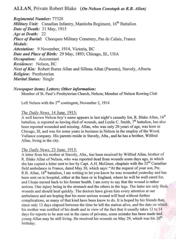 Galerie numérique de Soldat Robert Blake Allan