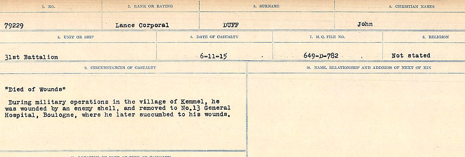 Galerie numérique de Caporal suppléant John Duff
