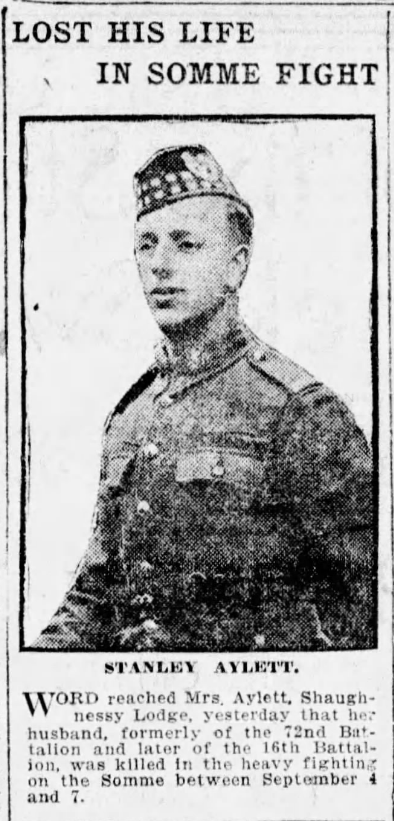 Tiré du Vancouver Daily Province, septembre 1916. Soumis pour le projet Operation Picture Me. -