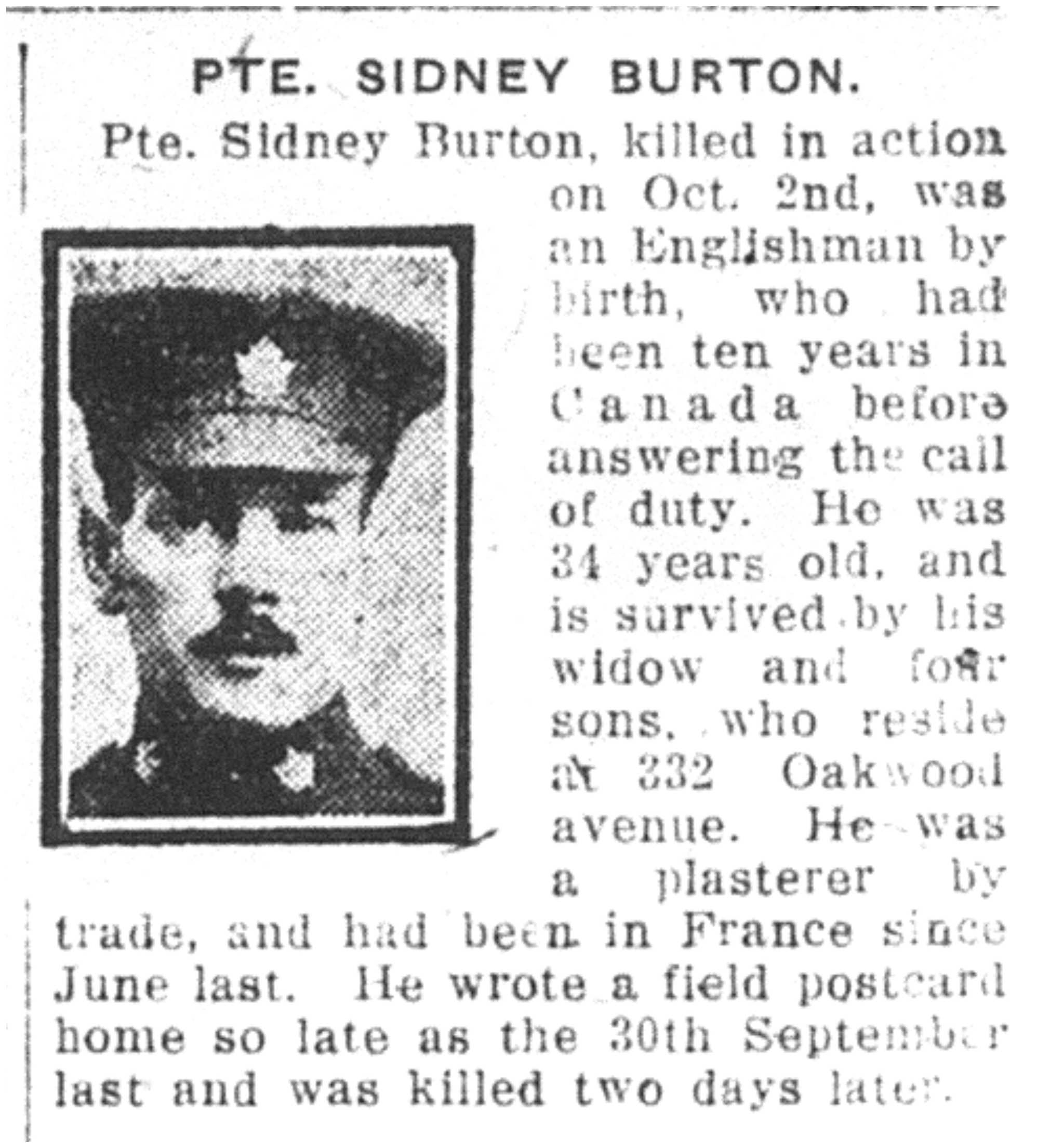 Fils de Charles J. et Helen Burton, de London, Angleterre; époux de Valentina Burton, de 376, Oakwood Avenue, Toronto, Ontario.