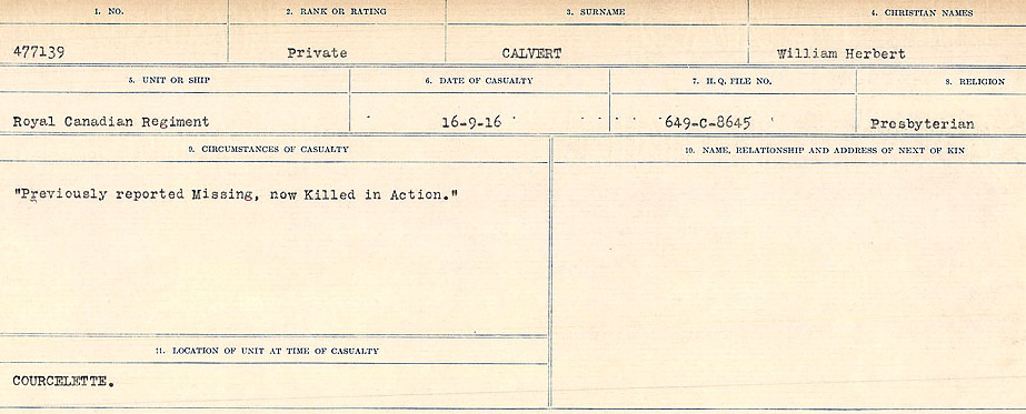 Galerie numérique de Soldat William Herbert Calvert