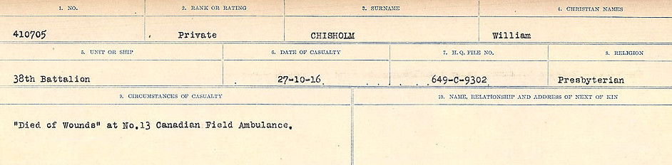 Fils de Andrew et Margaret Chisholm, de 3, Ritchie Place, Edinburgh, Écosse.