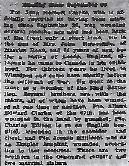 Fils de James Francis et Elizabeth Clarke, de 272, Superior St., Victoria, Colombie-Britannique.
