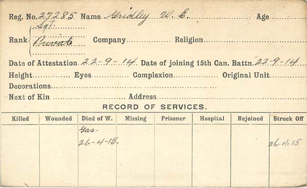 Unité/Régiment : Canadian Infantry (Central Ontario Regiment)