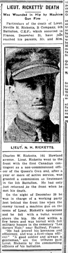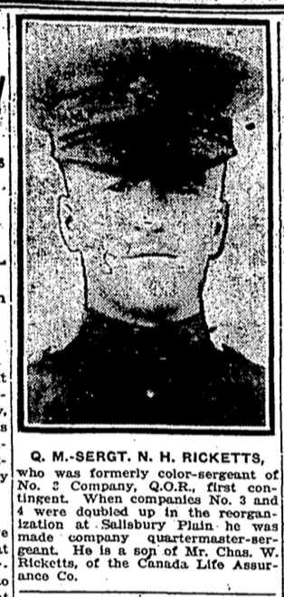 Fils de Charles Wellesley Ricketts et Jean Chalmers Ricketts, de 105, Howlet Avenue, Toronto, Ontario.