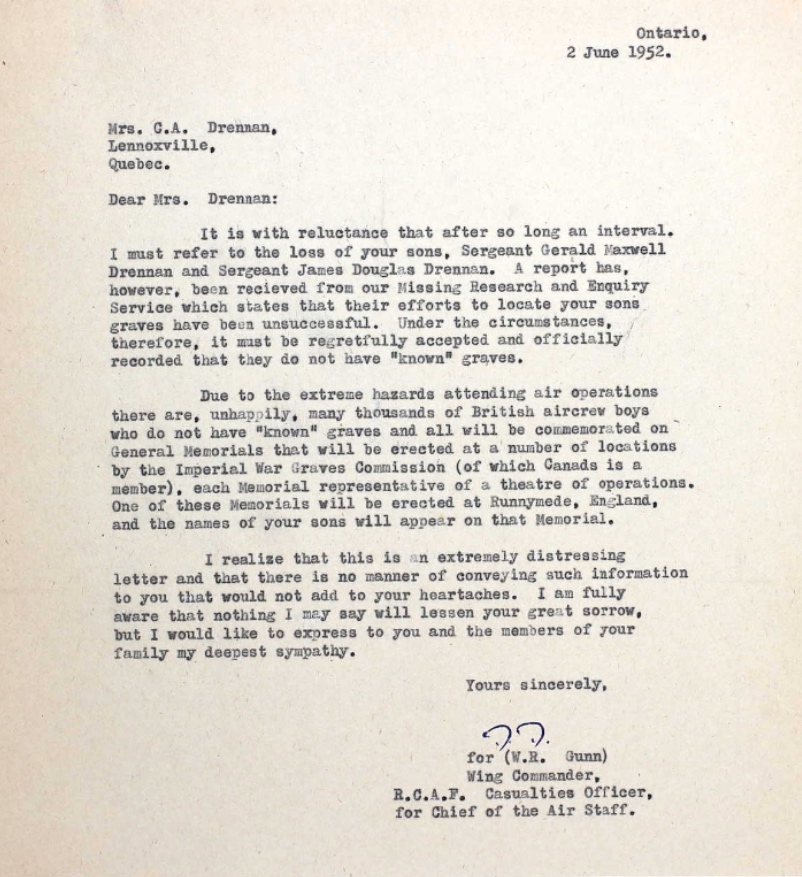Au cours de la Seconde Guerre mondiale, plus de cent seize mille hommes et femmes des forces aériennes du Commonwealth britannique sont morts au champ d'honneur. Plus de dix-sept mille d'entre eux étaient membres de l'Aviation royale canadienne ou des Canadiens qui servaient dans la Royal Air Force. Presque un tiers des morts n'ont pas de sépulture connue. De ce total, vingt mille quatre cent cinquante sont commémorés par nom au Mémorial de Runnymede situé à Englefield Green, près d'Egham, à trente-deux kilomètres à l'ouest de Londres.
